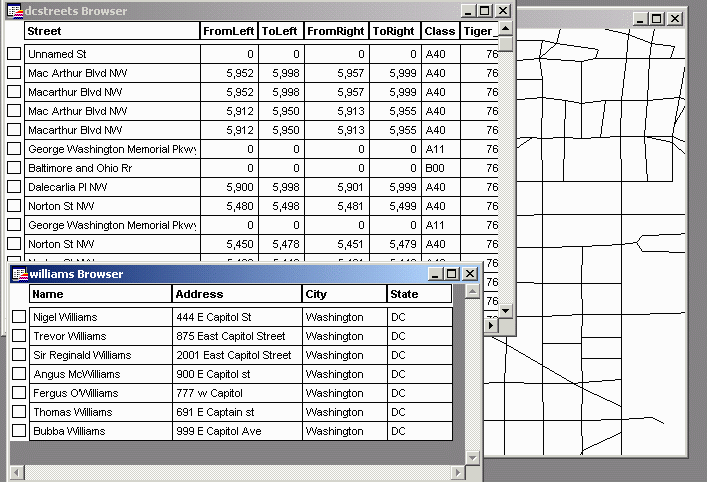 Geocoding is a very powerful and useful feature of GIS because you can take a database of thousands of records and map them as points, revealing hidden geographical patterns and enabling geographic analysis, such as Boundary Select.